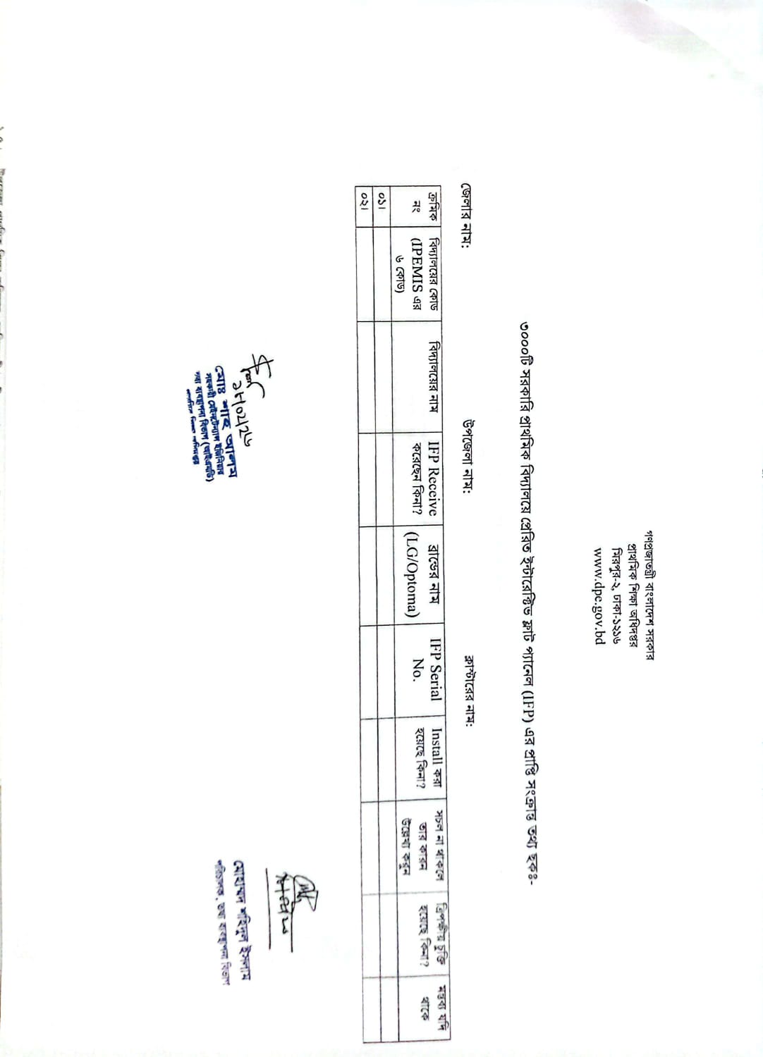 ইন্টারেক্টিভ ফ্লাট প্যানেল (IFP) তথ্য প্রদান প্রসঙ্গে।